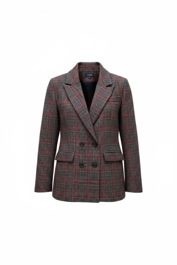 Veste tailleur en laine vierge à carreaux