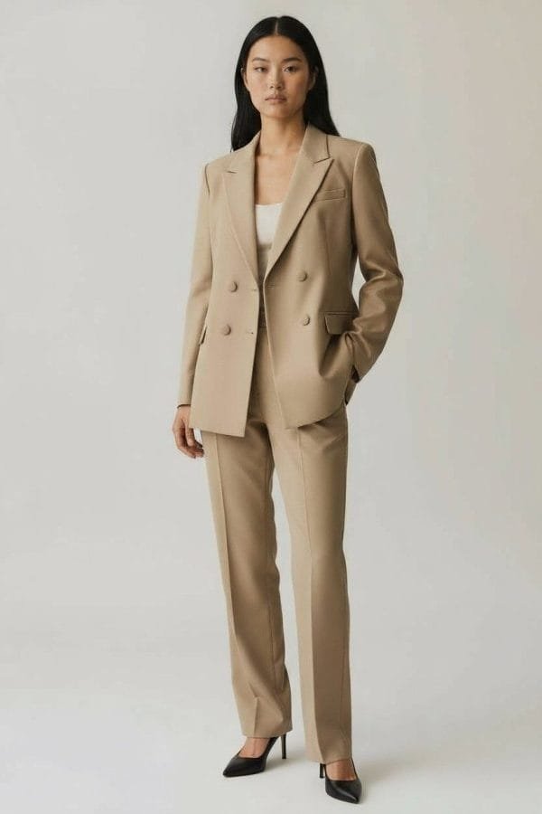 Collection NAÏRII Blazer croisé 100% laine fabriqué dans un tissu upcyclé couture.